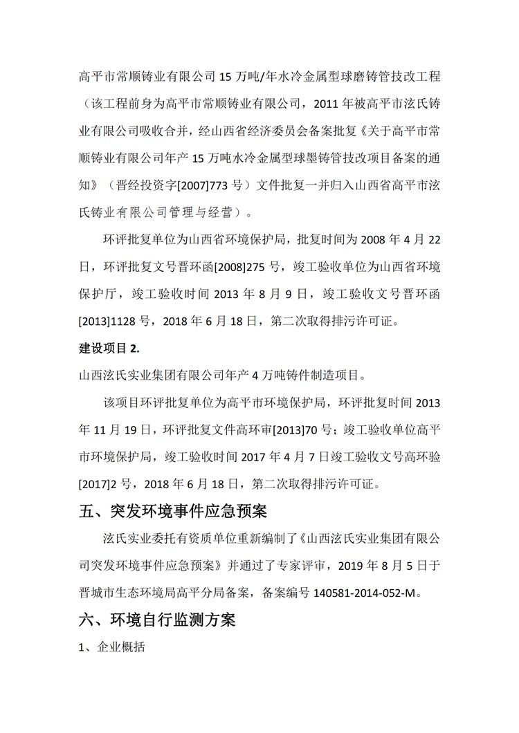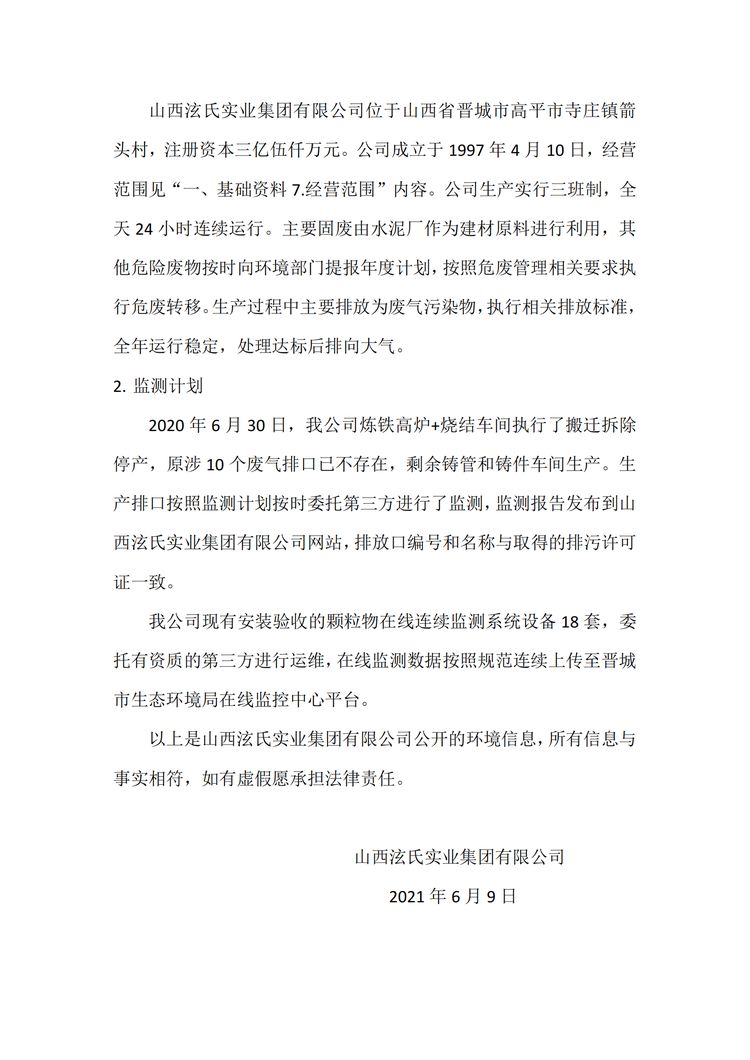 山西泫氏實業(yè)集團有限公司 環(huán)保信息公示資料